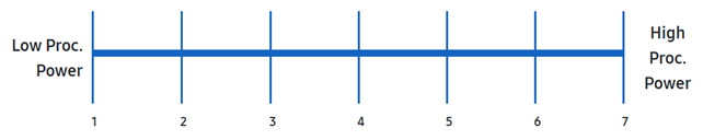 The semantic scales study provides data based on a semantic differential questionnaire administered to 600 individuals. Several semantic scales corresponding to the physical attributes were presented to the respondents. The figure below shows a sample scale for “Processing Power”.