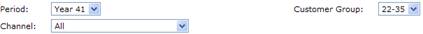 A sample sales and market shares chart is depicted below. This chart provides you with detailed sales and market share data for each of the competitors. The main difference between this chart and the one provided in the annual report is that you can ‘zoom in’ on a particular customer group (or segment) and/or in a particular distribution channel, using the choice boxes at the top of the chart.
