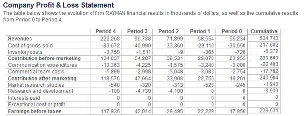 The Profit & Loss statement of your company is illustrated in Figure 12 and is explained below.