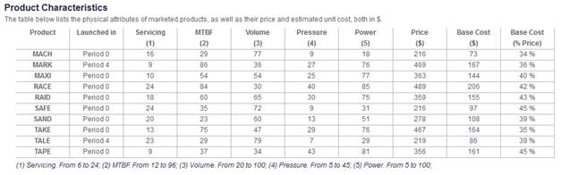 This report provides you with the market shares (in units and in dollar value), the volume sold and the retail sales of all marketed products (Squazols or Trigols). Volume and retail sales are given for the current period, and the variation with the previous period is provided as well. Newly launched or upgraded products are flagged. The physical characteristics, base cost and price of all marketed products are given as well. Again, newly launched or upgraded products are flagged.