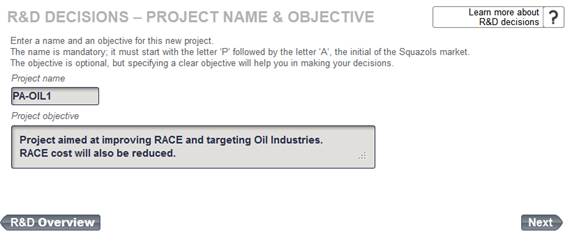 Figure 50 – R&D decisions – Project name & description