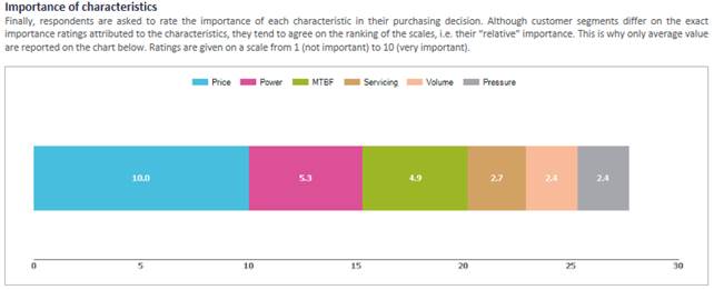 Importance of characteristics. Finally, respondents are asked to rate the importance of each characteristic in their purchasing decision. Although customer segments differ on the exact importance attributed to each characteristic, they tend to agree on the ranking of the scales, i.e. their “relative” importance. This is why only average values are reported on the chart of Figure 27. Ratings are given on a scale from 1 (not important) to 10 (very important).