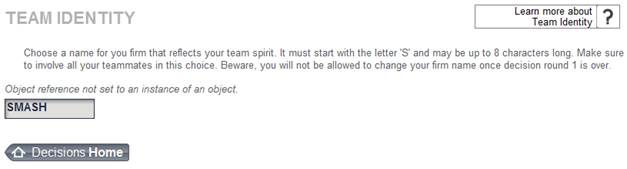 Initially, the competing companies are identified by a unique letter such as L, M, N, R, S or T. Your first task will be to name your company, starting with this letter and reflecting the spirit of your team.